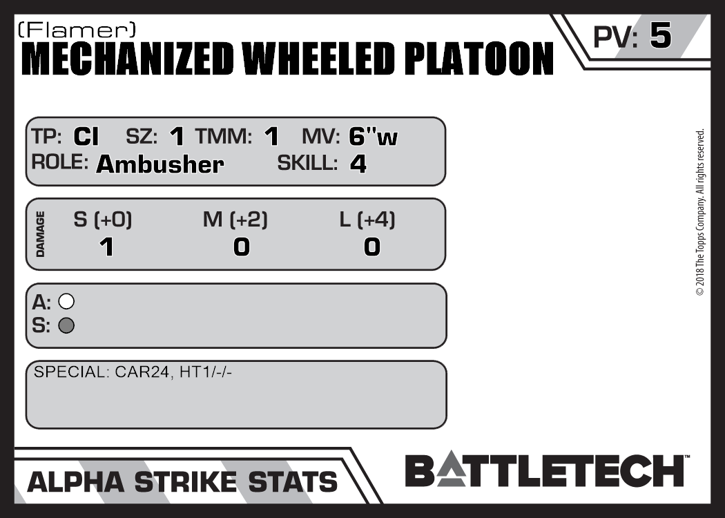 | Mechanized Wheeled Platoon (Rifle, Energy) | 56 | 9 | Standard | TW | |