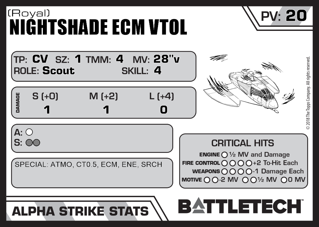 | Nightshade ECM VTOL (Armor) | 344 | 21 | Introductory | TR:3050U | |