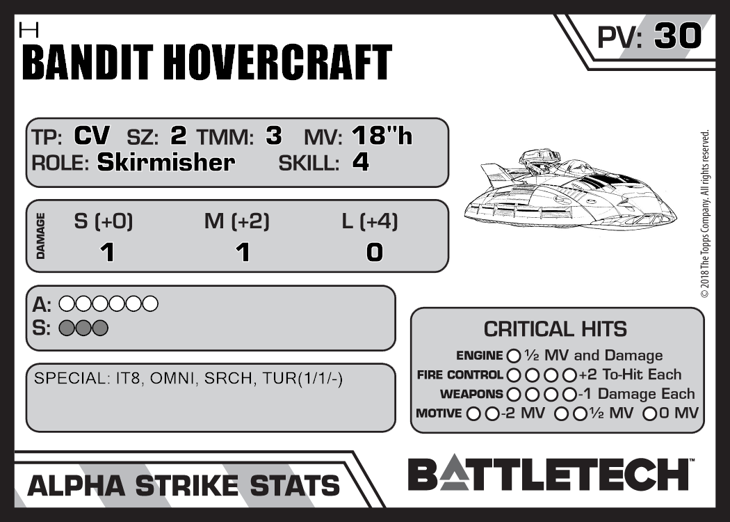 | Bandit Hovercraft "Warthog" | 872 | 32 | Experimental | XTR:Gladiators | |