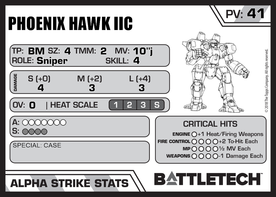 Phoenix Hawk IIC 6 2,490 47 Standard BattleCorps