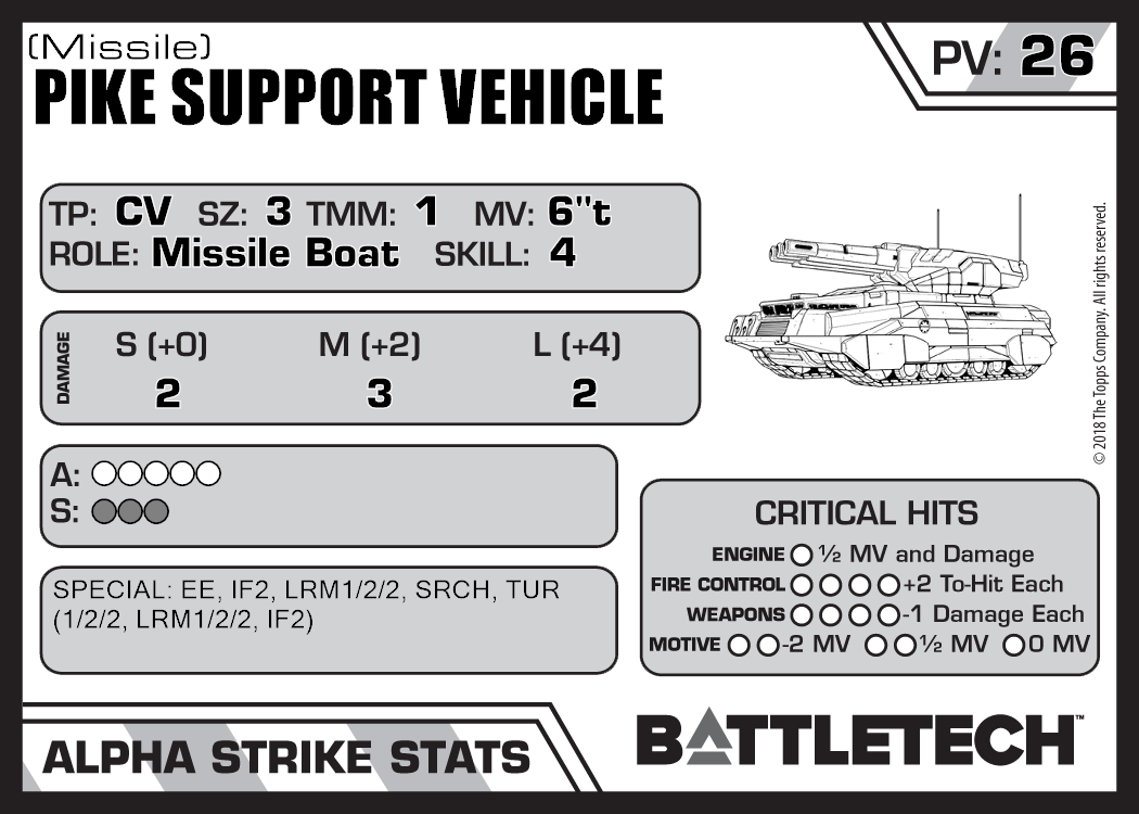 | Pike Support Vehicle (Clan) | 892 | 22 | Standard | RG30 | |