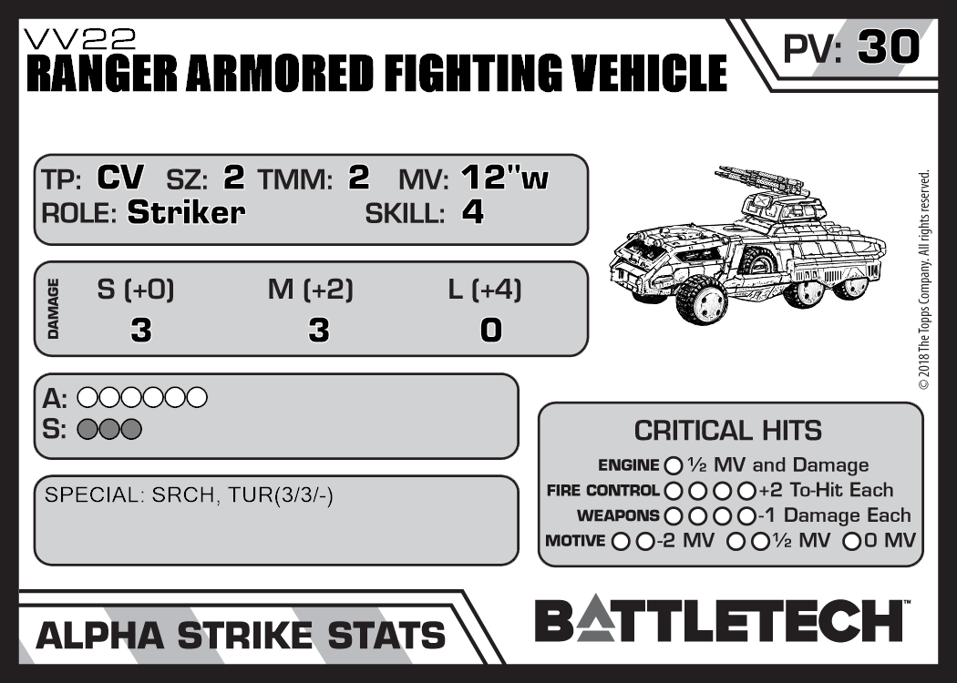 | Ranger Armored Fighting Vehicle VV2 | 711 | 28 | Advanced | TR:3085 | |
