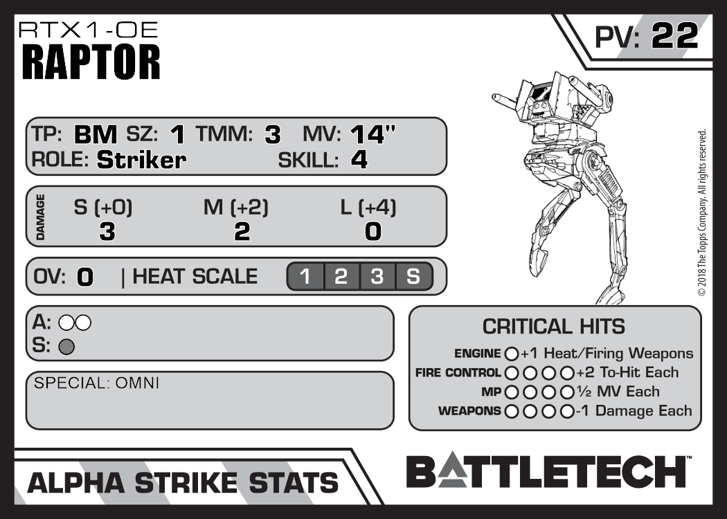 | Raptor RTX1-OA | 783 | 22 | Standard | TR:CI | |