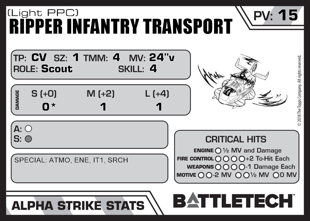 | Ripper Infantry Transport (Infantry) | 108 | 10 | Standard | TR:3050U | |