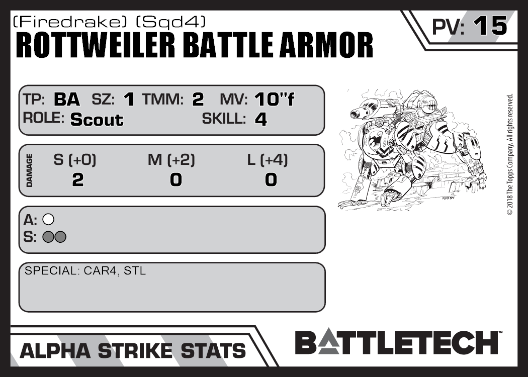 | Rottweiler Battle Armor (Close Combat) (Sqd4) | 204 | 18 | Standard | TR:3075 | |