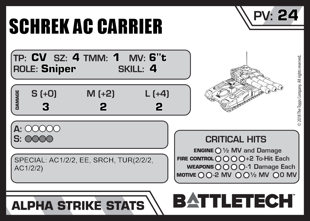 | Schrek PPC Carrier (Armor) | 1,040 | 27 | Standard | TR:3085 | |