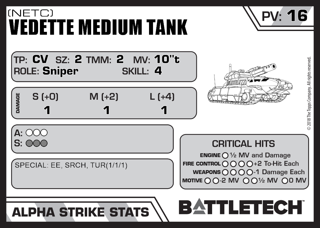 | Vedette Medium Tank (Cell) | 731 | 20 | Advanced | TR:3085 | |