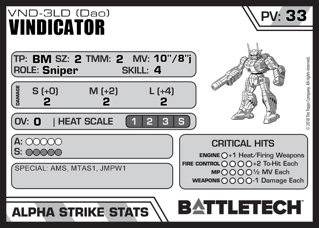 Vindicator VND-1AA "Avenging Angel" 966 23 Introductory TR:SW