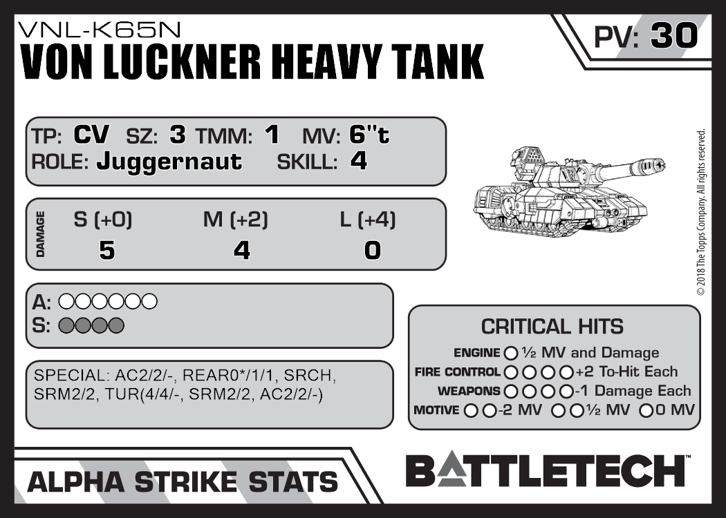 | Von Luckner Heavy Tank (Star League) | 1,216 | 37 | Standard | His:OK | |