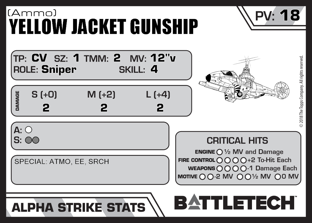| Yellow Jacket Gunship (PPC) | 582 | 23 | Standard | TR:3085 | |
