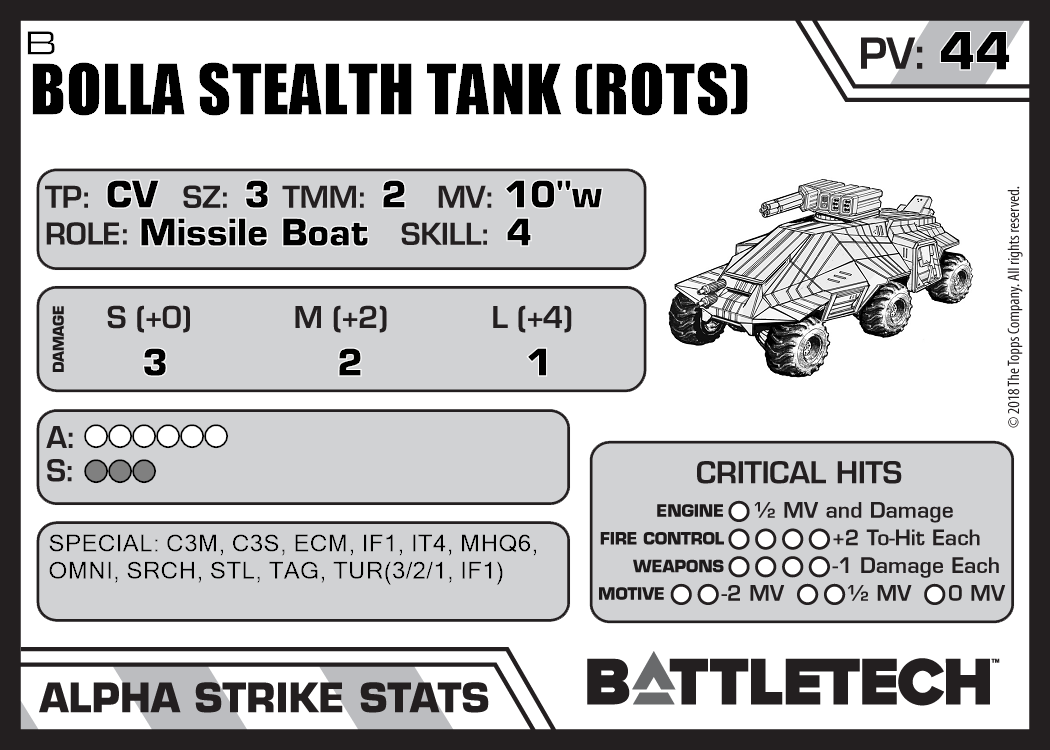 | Bolla Stealth Tank (RotS) A | 1,059 | 35 | Advanced | TR:3085 | |