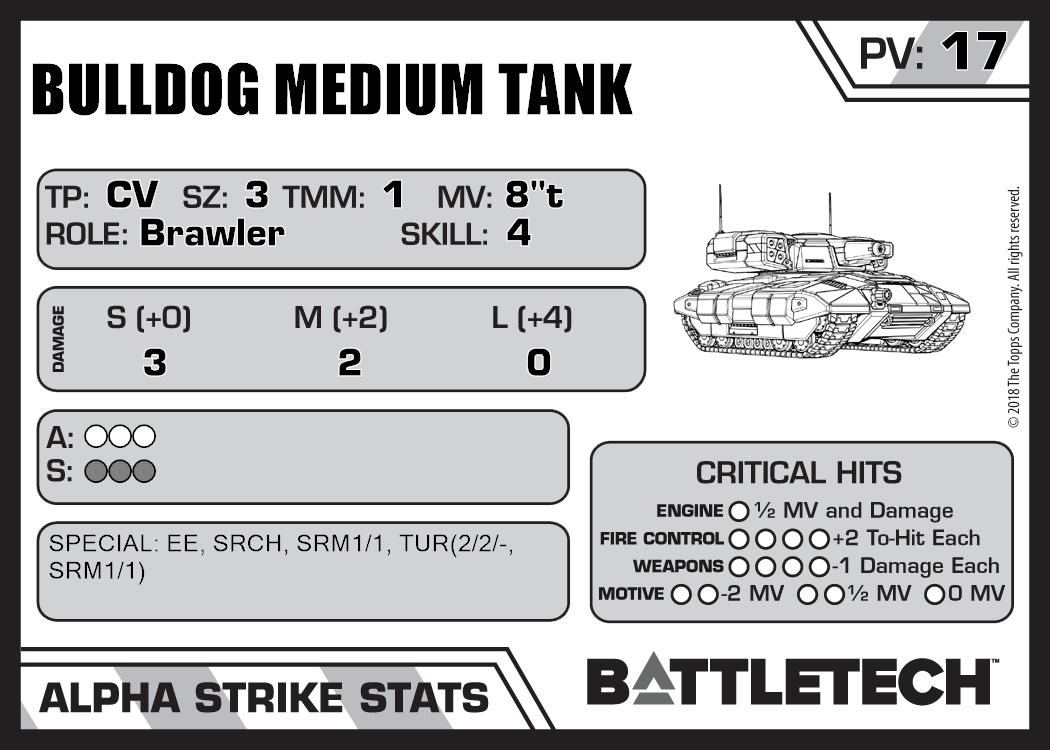 | Bulldog Medium Tank (LRM) | 748 | 21 | Introductory | TR:3039 | |