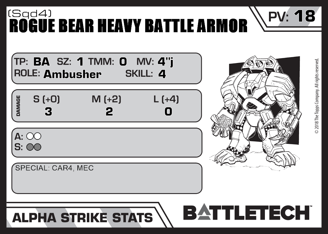 | Rogue Bear Heavy Battle Armor HR (Sqd6) | 432 | 19 | Experimental | XTR:Clans | |