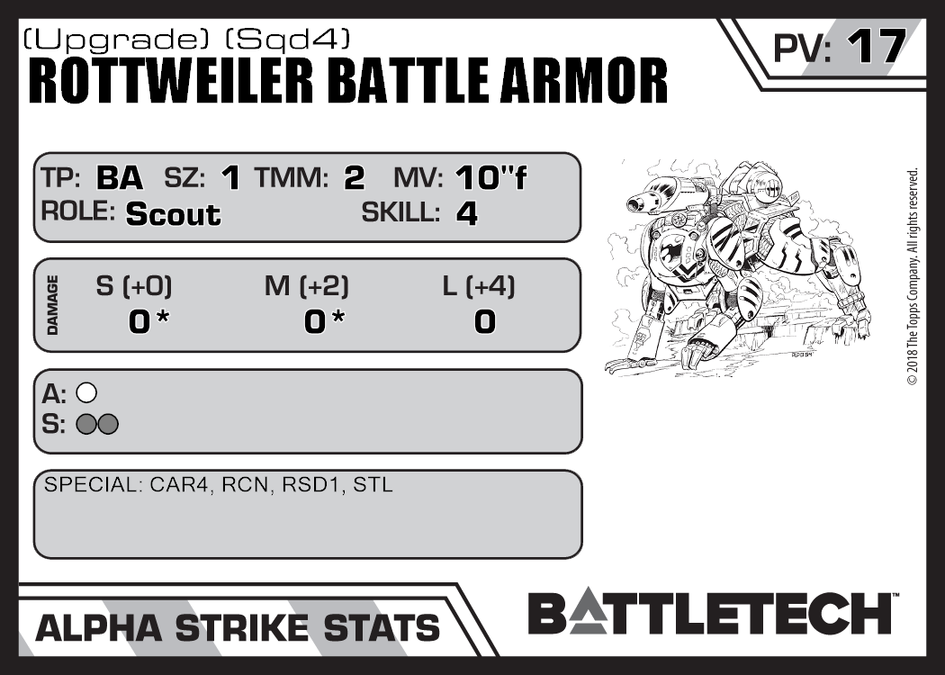 | Rottweiler Battle Armor (Close Combat) (Sqd4) | 204 | 18 | Standard | TR:3075 | |