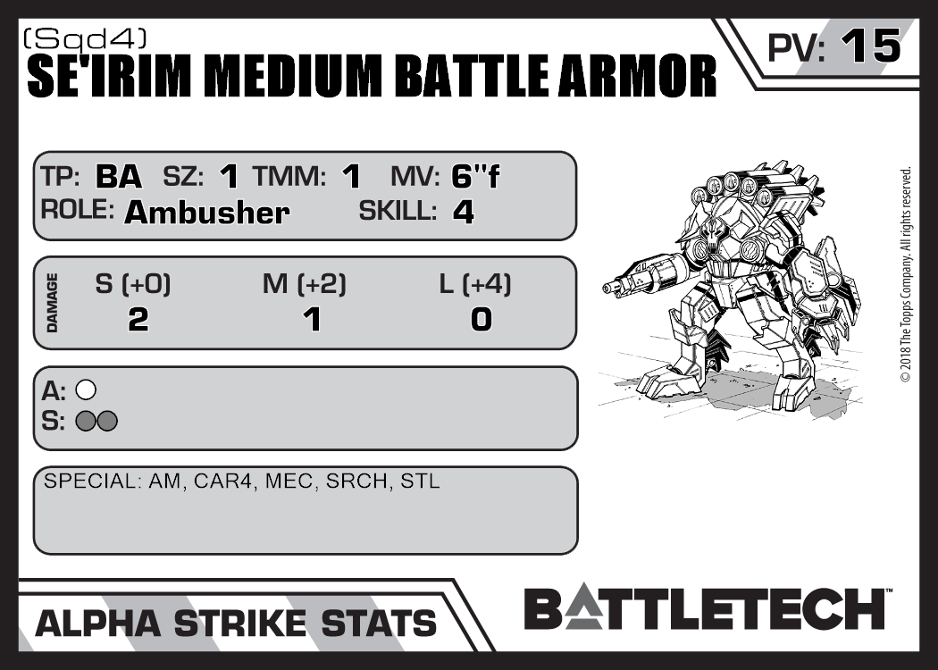 | Se'irim Medium Battle Armor (Sqd5) | 340 | 15 | Standard | TR:3075 | |