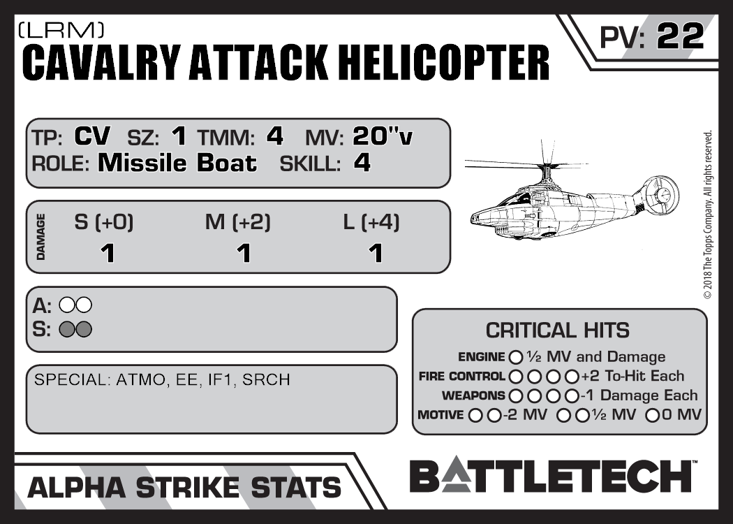 | Cavalry Attack Helicopter (TAG) | 495 | 25 | Standard | TR:3058U | |