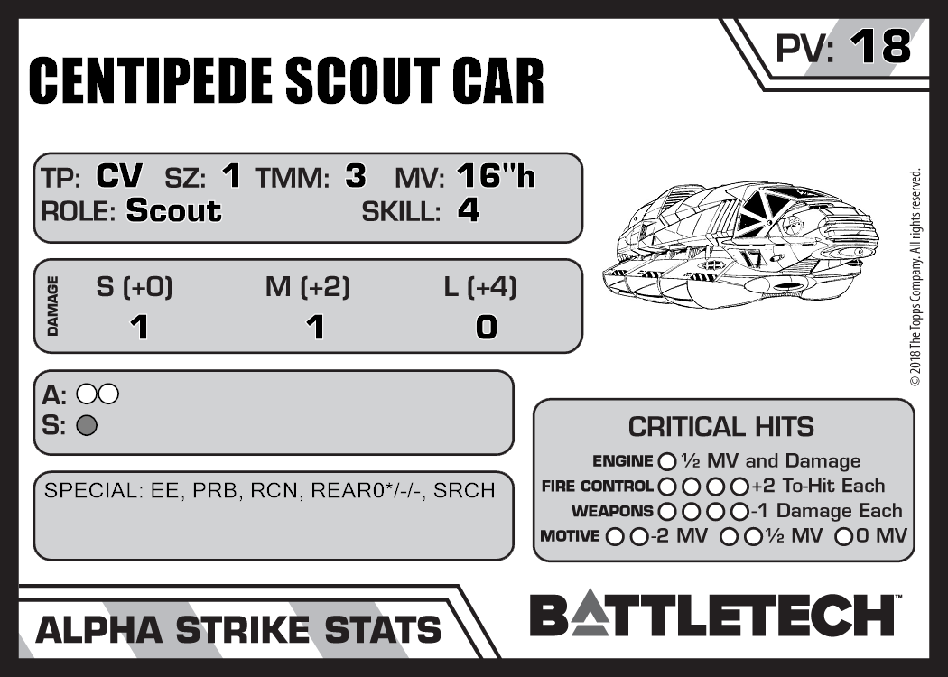 | Centipede Scout Car (SRM) | 431 | 15 | Introductory | TR:3058U | |