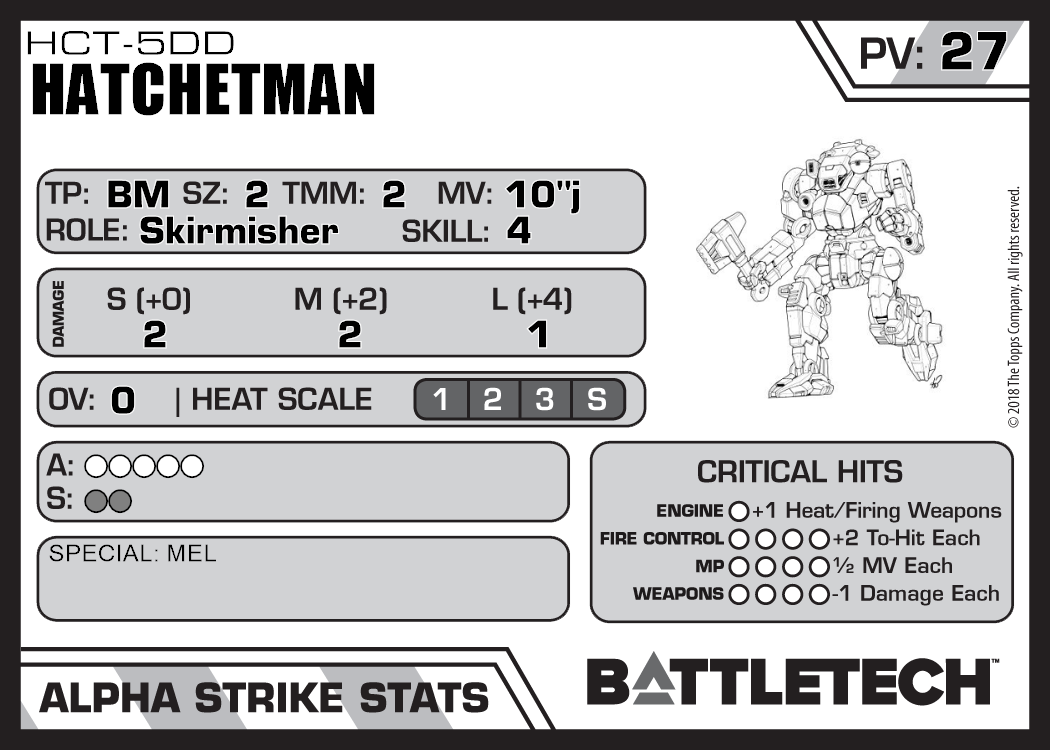 | Hatchetman HCT-3F | 854 | 20 | Introductory | TR:SW | |