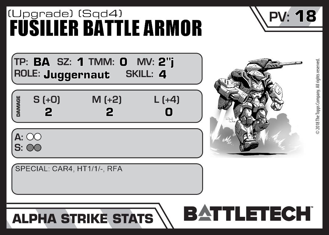 | Fusilier Battle Armor (Upgrade) (Sqd6) | 660 | 20 | Advanced | TR:3150 |