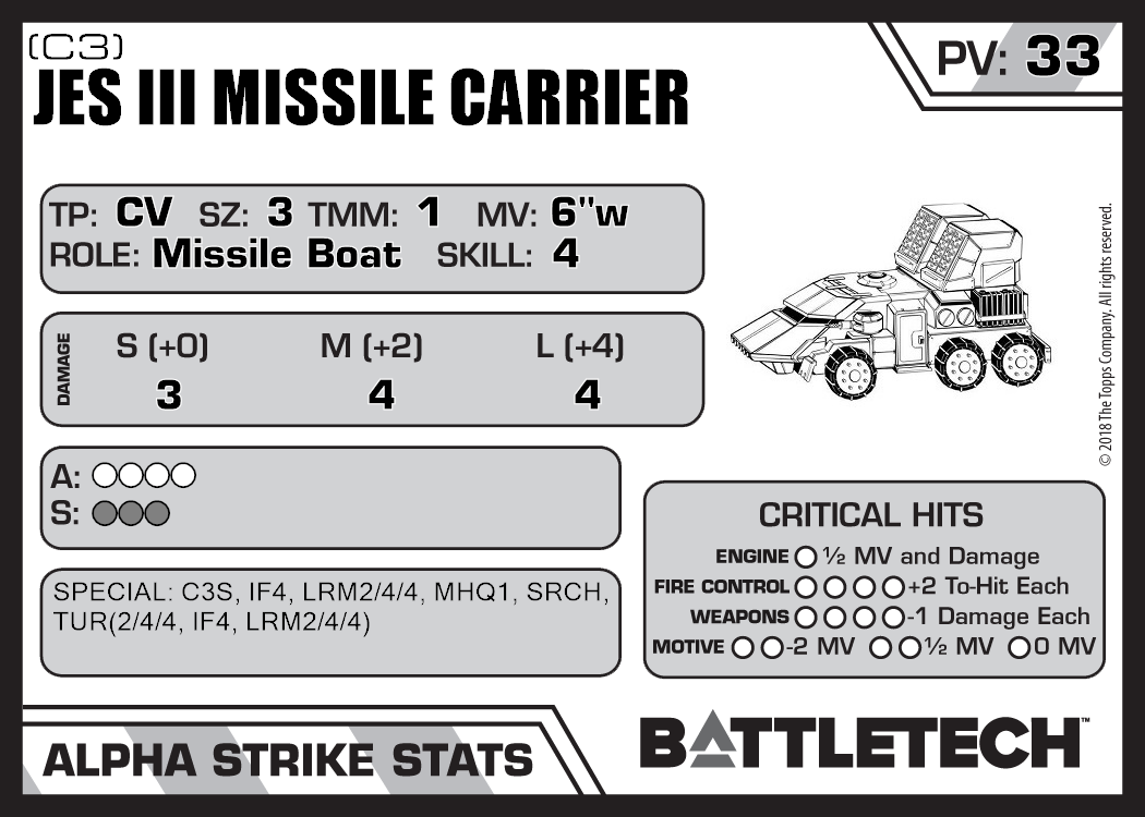 | JES III Missile Carrier | 1,037 | 31 | Standard | TR:3145 | |