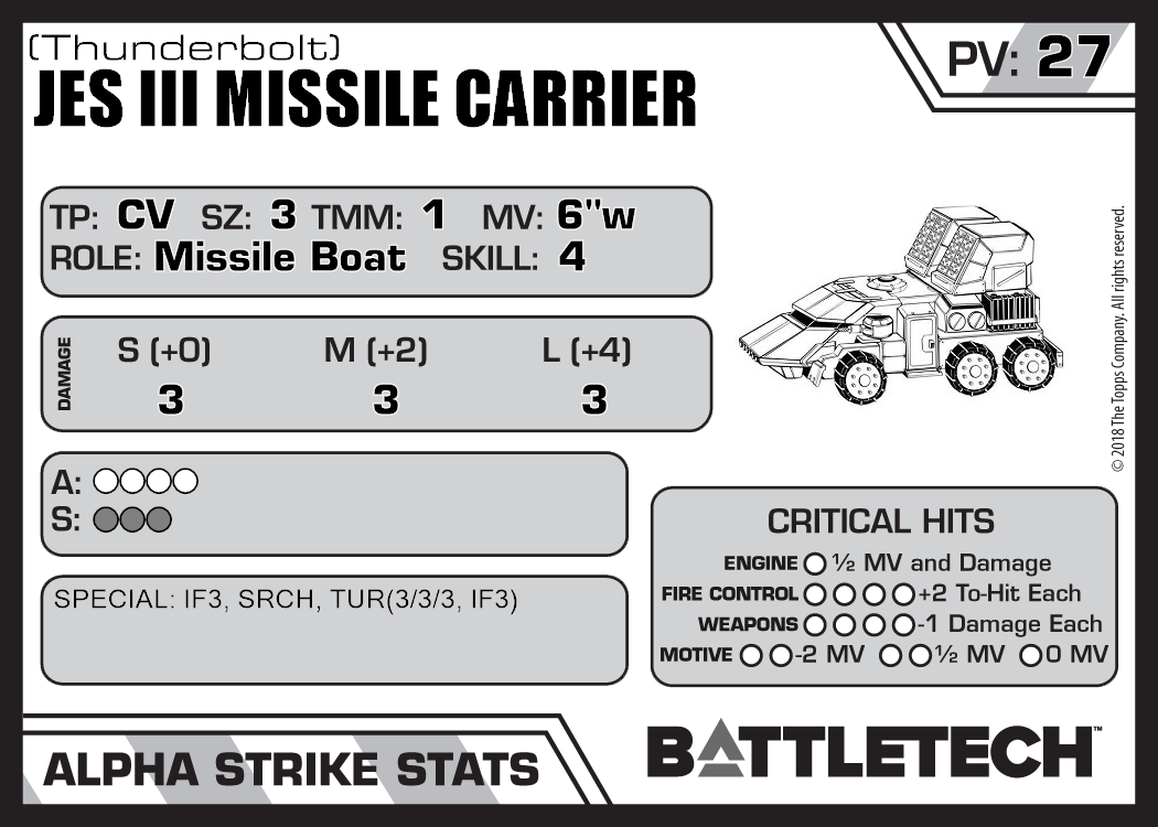 | JES III Missile Carrier | 1,037 | 31 | Standard | TR:3145 | |