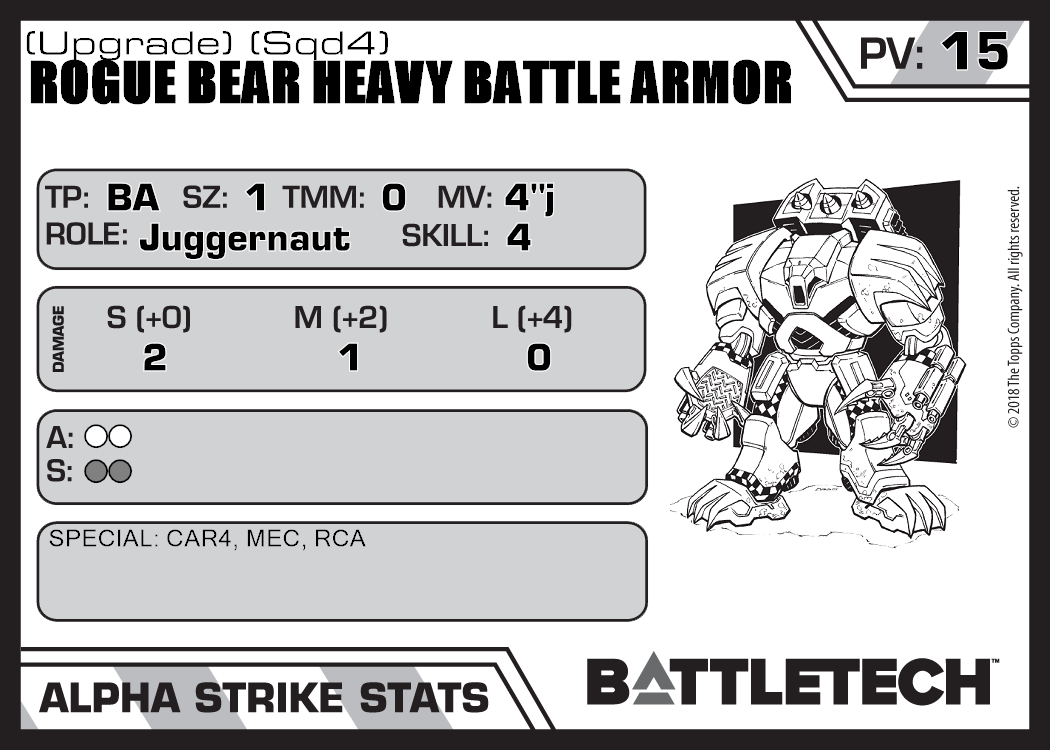 | Rogue Bear Heavy Battle Armor (Sqd4) | 346 | 18 | Standard | TR:3075 | |