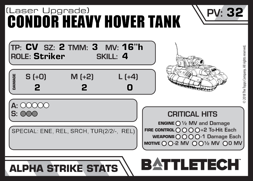 | Condor Heavy Hover Tank (Davion) | 592 | 23 | Introductory | TR:3039 | |