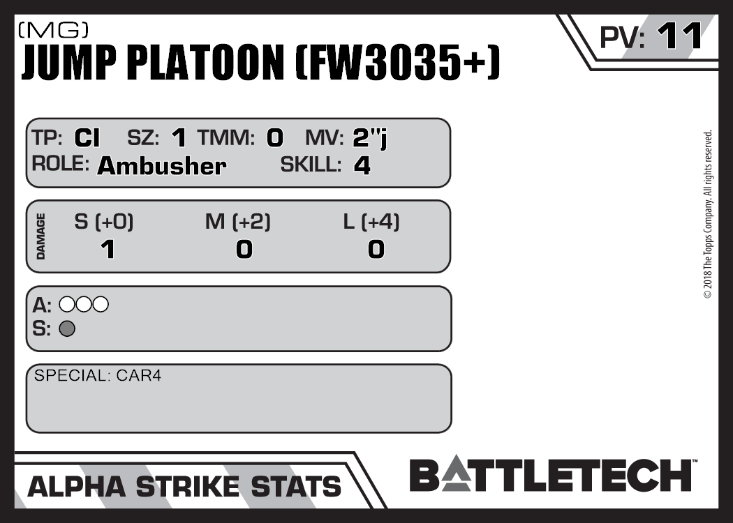 | Jump Platoon (FW3035+) (Rifle, Ballistic) | NA | 11 | Advanced | TO:AUE | |