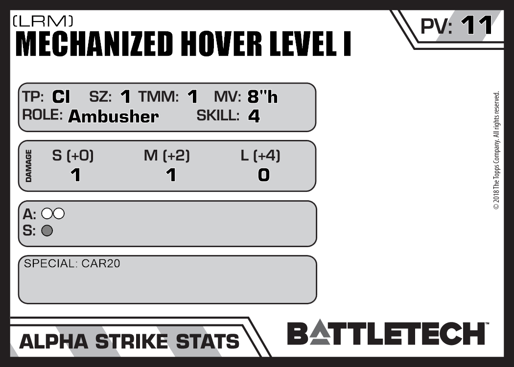 | Mechanized Hover Level I (Rifle, Energy) | NA | 12 | Standard | TW | |