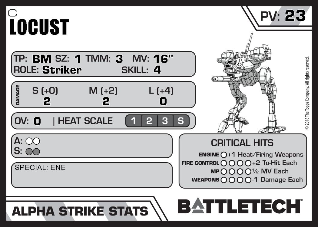 | Locust LCT-5T | 520 | 22 | Standard | BattleCorps | |