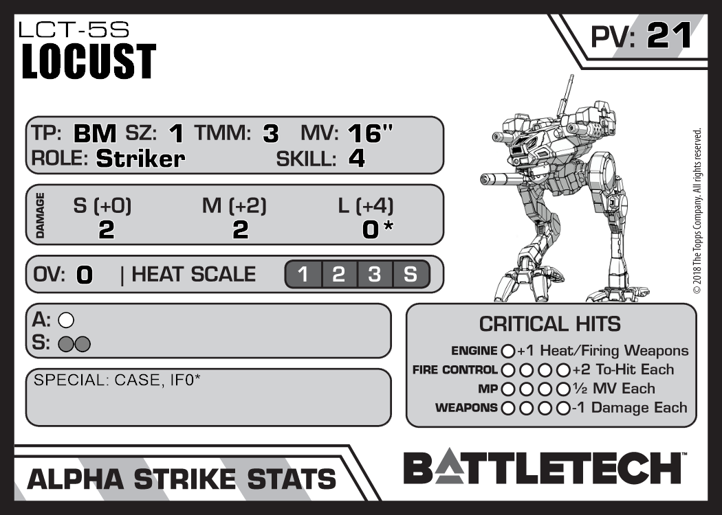 | Locust LCT-5T | 520 | 22 | Standard | BattleCorps | |