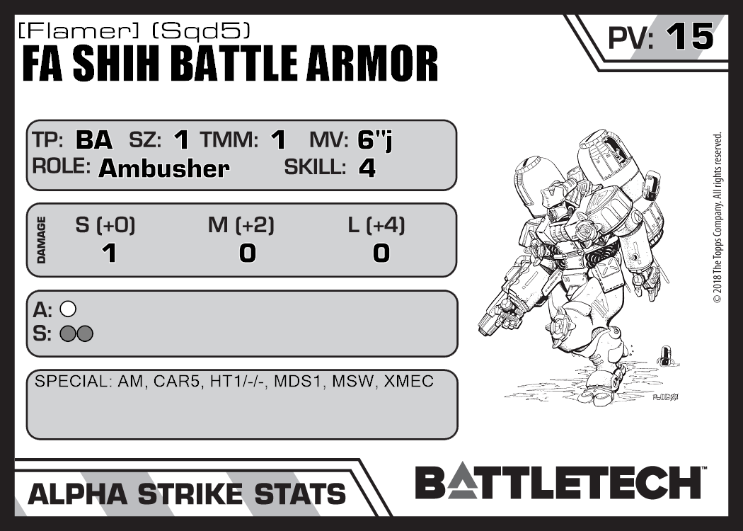 | Fa Shih Battle Armor [Laser] (Sqd6) | 404 | 15 | Advanced | TR:3058U | |