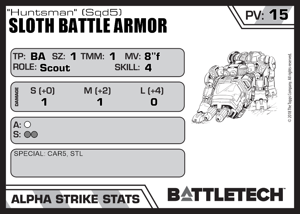 | Sloth Battle Armor (Sqd6) | 312 | 12 | Standard | TR:3058U | |