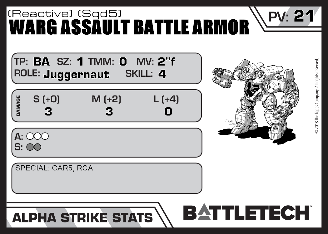 | Warg Assault Battle Armor (Reactive) (Sqd4) | 563 | 18 | Standard | TR:3145 | |