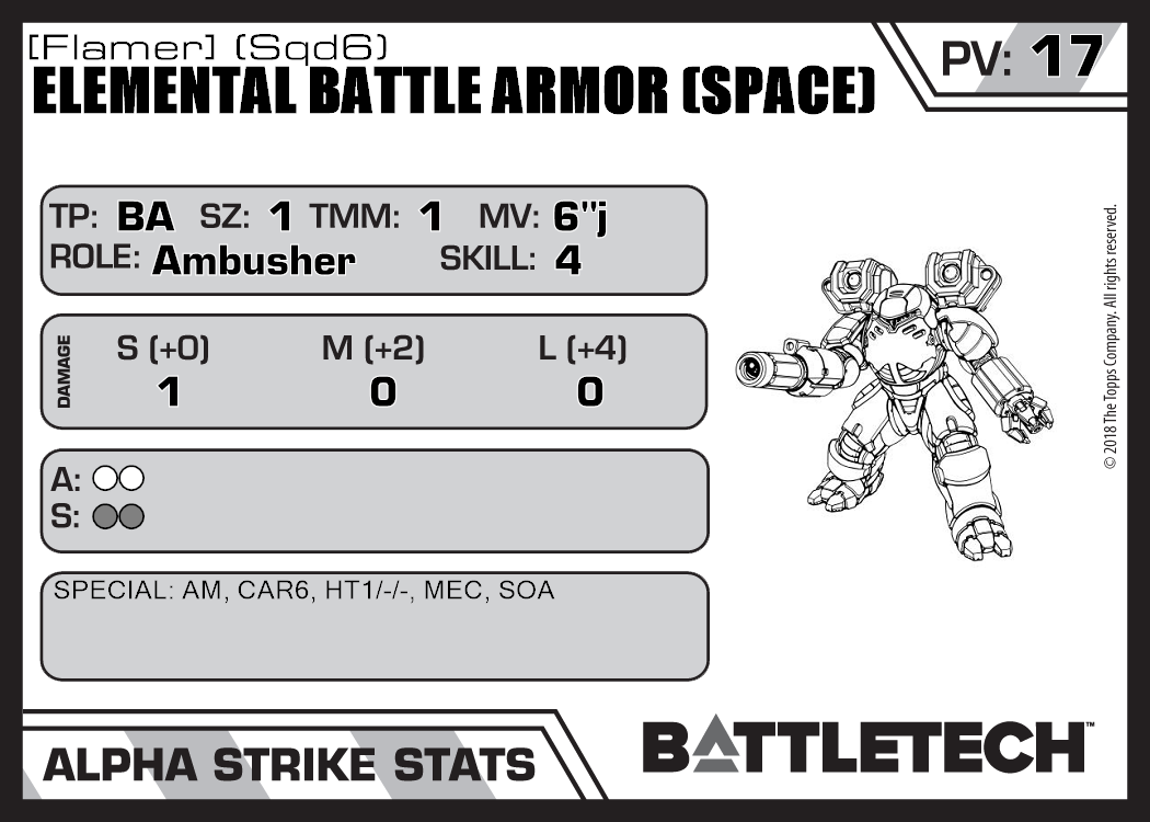 | Elemental Battle Armor (Space) [Flamer] (Sqd5) | 291 | 17 | Standard | TR:3085 | |