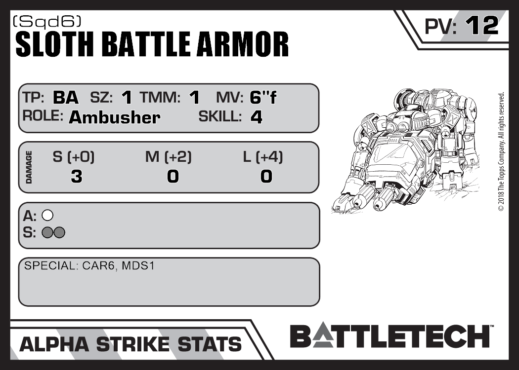 | Sloth Battle Armor (Sqd4) | 180 | 12 | Standard | TR:3058U | |