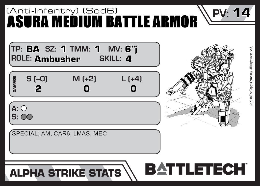 | Asura Medium Battle Armor (Anti-Infantry) (Sqd5) | 270 | 14 | Standard | TR:3075 | |