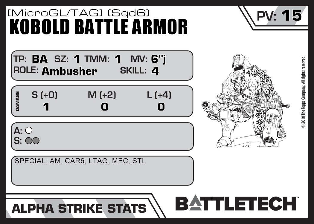| Kobold Battle Armor [MicroGL/TAG] (Sqd5) | 153 | 15 | Standard | TR:3075 | |