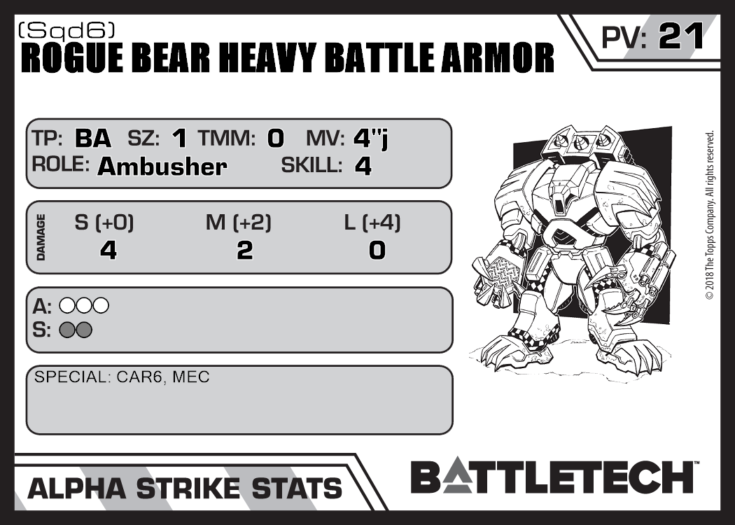 | Rogue Bear Heavy Battle Armor (Sqd4) | 346 | 18 | Standard | TR:3075 | |