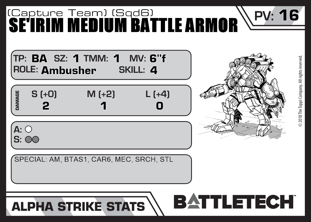 | Se'irim Medium Battle Armor (Capture Team) (Sqd5) | 345 | 15 | Advanced | TR:3075 | |
