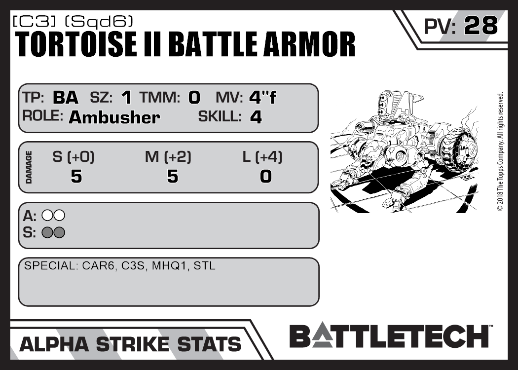 | Tortoise II Battle Armor [C3] (Sqd4) | 619 | 22 | Advanced | XTR:RotS 2 | |