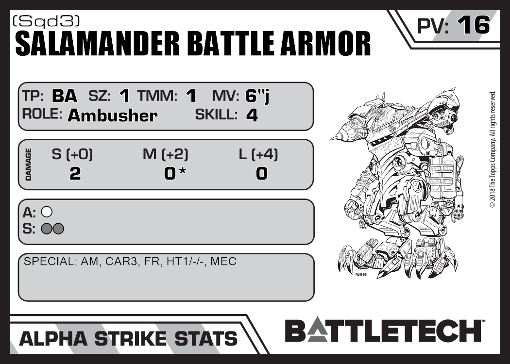 | Salamander Battle Armor (Laser) (Sqd4) | 292 | 16 | Standard | TR:3058U | |