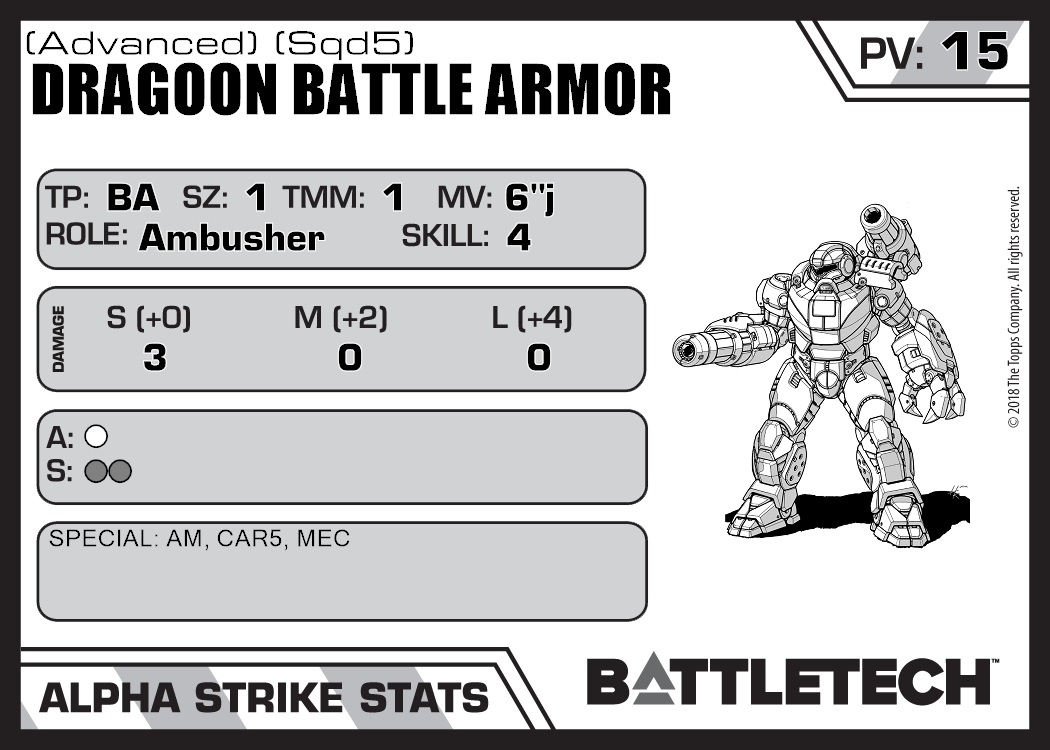 | Dragoon Battle Armor (Advanced) (Sqd6) | 445 | 15 | Advanced | RG29 |