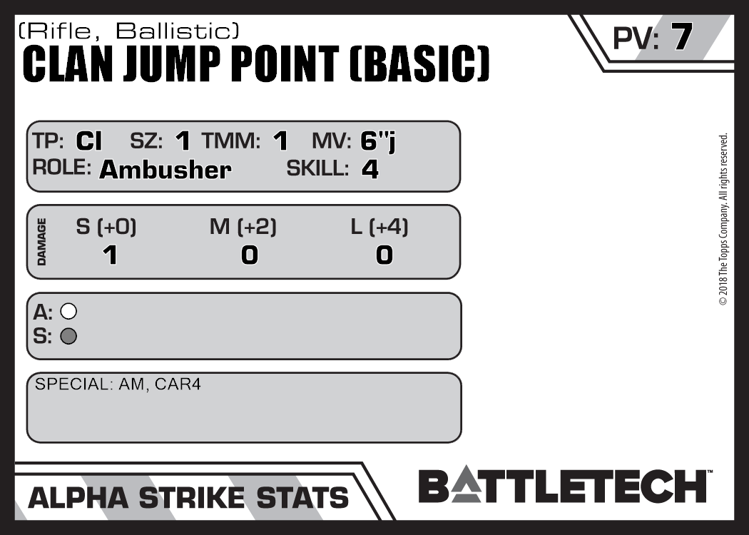 | Clan Jump Point (Basic) (Flamer) | 60 | 8 | Standard | TW | |