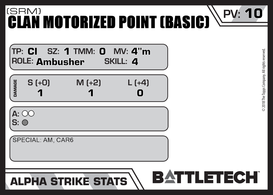 | Clan Motorized Point (Basic) (Rifle, Ballistic) | 78 | 8 | Standard | TW | |