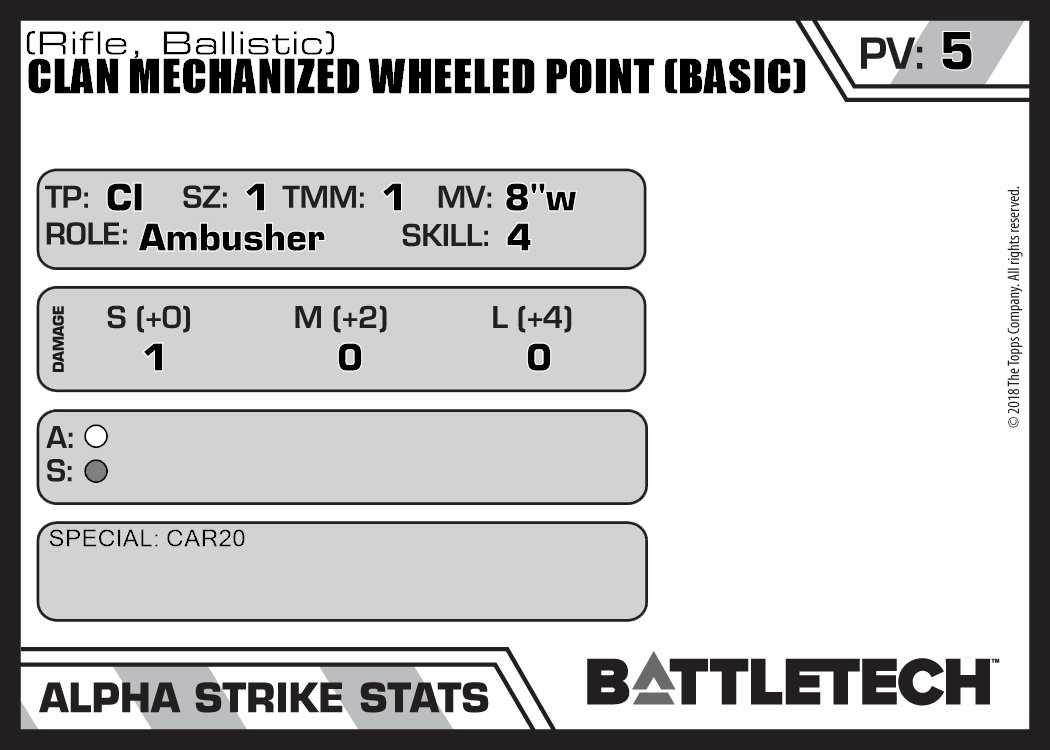 | Clan Mechanized Wheeled Point (Basic) (MG) | 48 | 5 | Standard | TW | |